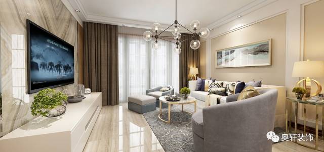 別墅的客廳比較大,是非常重要的場所,因此,在設(shè)計時,要注意對空間整體和局部的把控。而在進行別墅高層處理時,要增加輔助照明、墻面修飾、欄板形式等手法來豐富別墅的空間感。