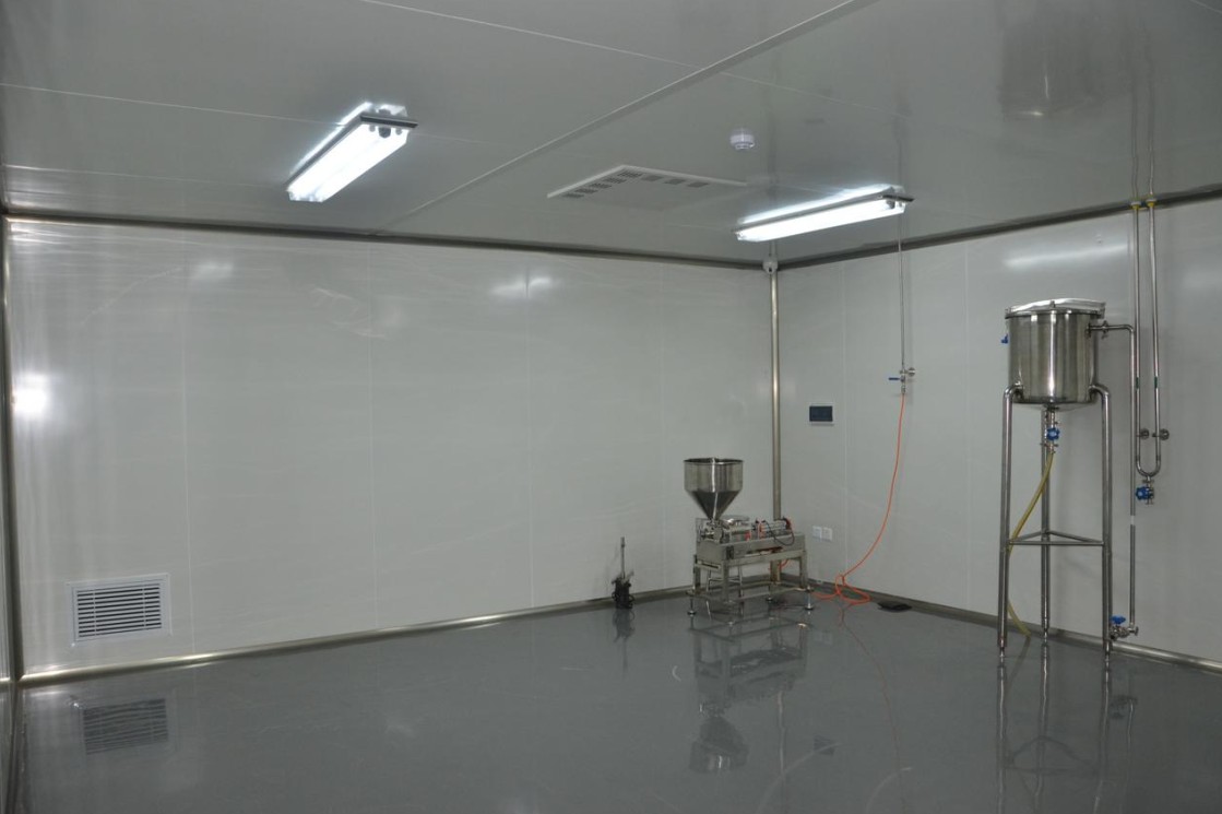 全區墻體采用機制巖棉夾心彩鋼板,整板厚度50mm, 面壁鋼板厚度0.426mm,潔凈室高度3.2米